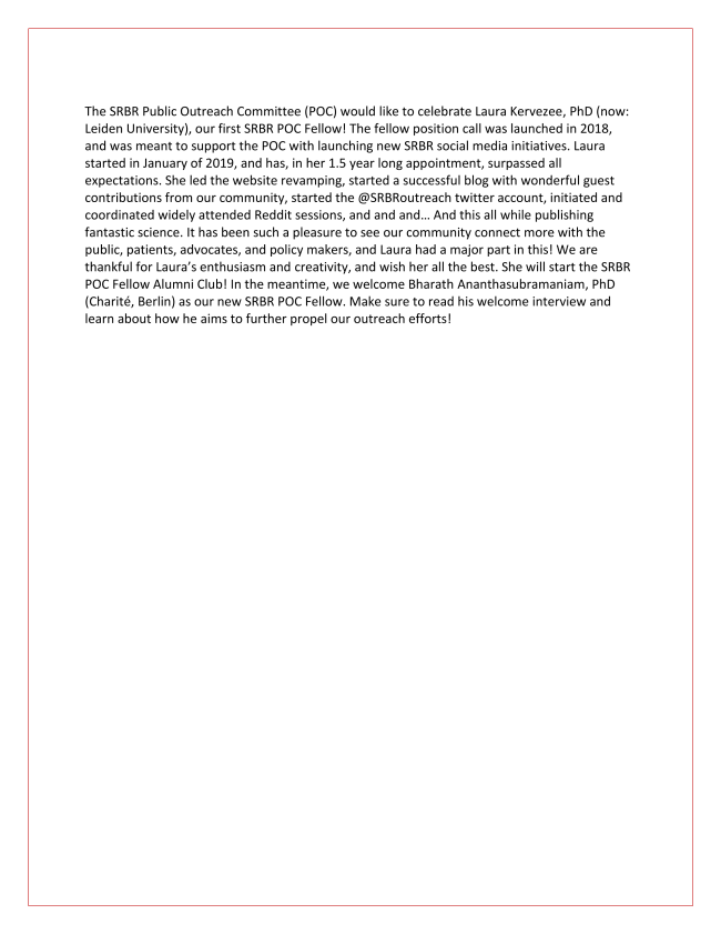 NEW SRBR PUBLIC OUTREACH FELLOW