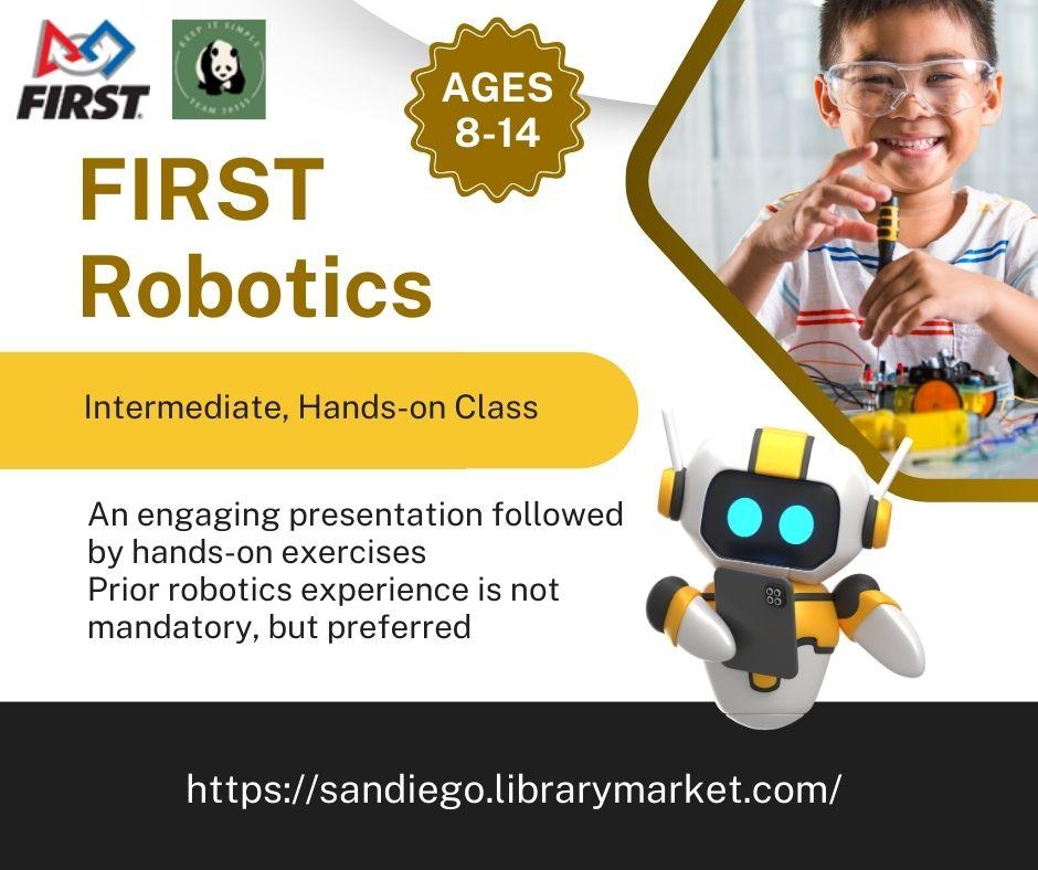 First Robotics: Saturday, November 30, 10 to 12 pm. Students ages 8-14 will engage in an exciting, hands-on robotics program to help them prepare to take part in First Lego League (FLL) or First Tech Challenge (FTC). Details: [https://sandiego.librarymarket.com/event/firstrobotics1130]