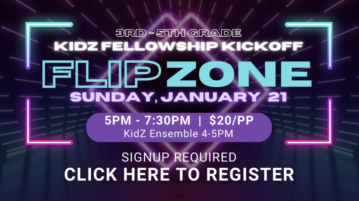 5:00 pm KidZ Fellowship (3rd-5th Grade) Flip Zone - Meet on Veranda