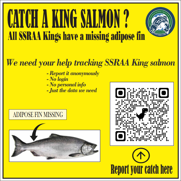 For the next couple of years, all of SSRAA's returning Chinook salmon are marked with a missing adipose fin. We need your help recording how many of these fish are caught!