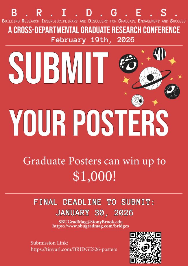 BRIDGES is Stony Brook University’s interdisciplinary graduate student conference, hosted by the Graduate Arts and Sciences Magazine. The conference brings together graduate students from across departments to share research, exchange perspectives, and build cross-disciplinary connections.
