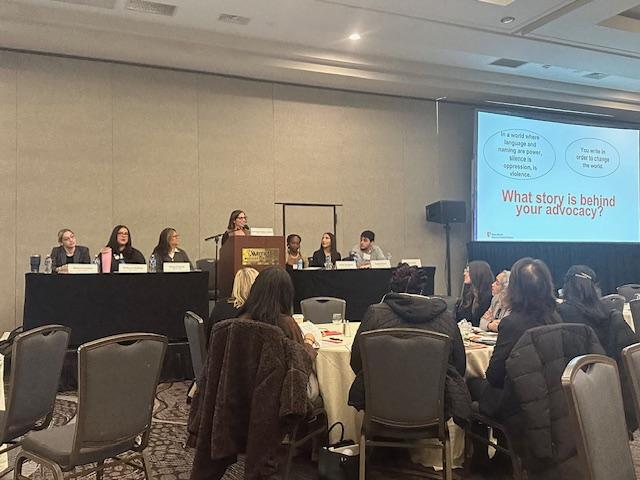 A group of BSW and MSW students presented at the 37th Annual Keys for the Homeless Conference held in December, with a workshop titled "Centering Storytelling in Advocacy." The well-attended session engaged participants in using storytelling as an advocacy tool, featuring powerful narratives from library interns and attendees’ own experiences.