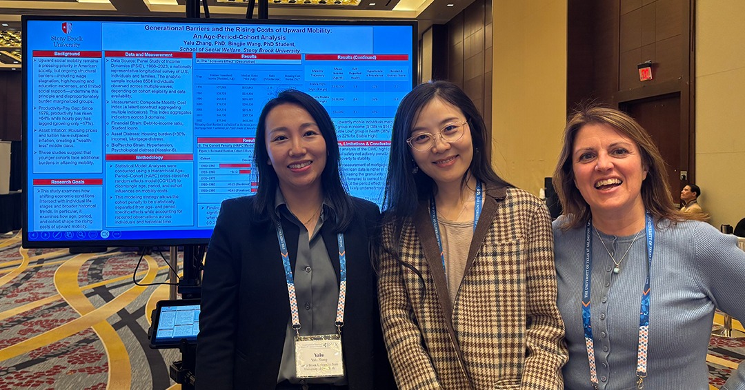 Meredith Slopen, and Yalu Zhang, who presented alongside PhD student Bingjie Wang. Also in attendance were Haotian Zheng, assistant professor; Robin DeLuca-Acconi, clinical associate professor; and Elissa Friedman, clinical instructor.