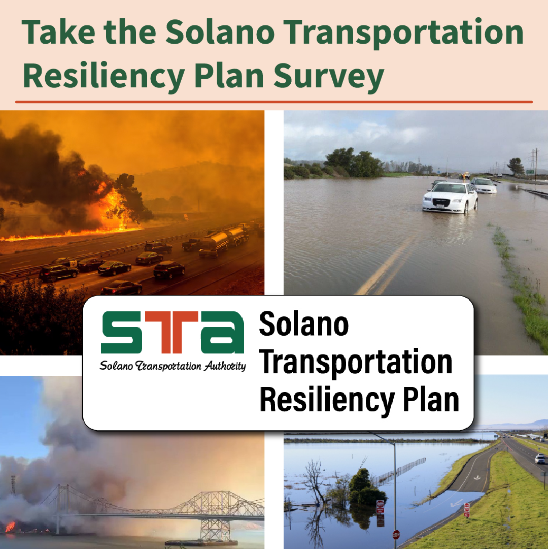 The Solano Transportation Authority invites Solano County residents to participate in an important survey that will gather community input to identify needs, challenges, and potential transportation improvements that will protect Solano County’s transportation infrastructure by developing proactive responses to extreme weather risks.