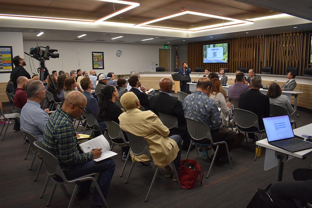 On October 16, 2025, a community meeting for projects along the State Route 37 (SR 37) corridor was held at the JFK Library in Vallejo. The event, led by the City of Vallejo Mayor, Andrea Sorce, and District 5 Solano County Supervisor, STA Chair and Metropolitan Transportation Commissioner, Mitch Mashburn, provided an opportunity for community members and local officials to engage directly in dialogue about the ongoing SR 37 and Fairgrounds Drive Diverging Diamond Interchange (DDI) projects.