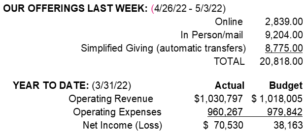 Thank you for contributions for the “Prayers for Service” project. The donations totaled $1,732.32. I am humbled by your generosity. I have wanted to give back to a parish that became family to me for a very long time. More details of the project will be shared as it nears completion. Indeed, God is good all the time and all the time God is good.