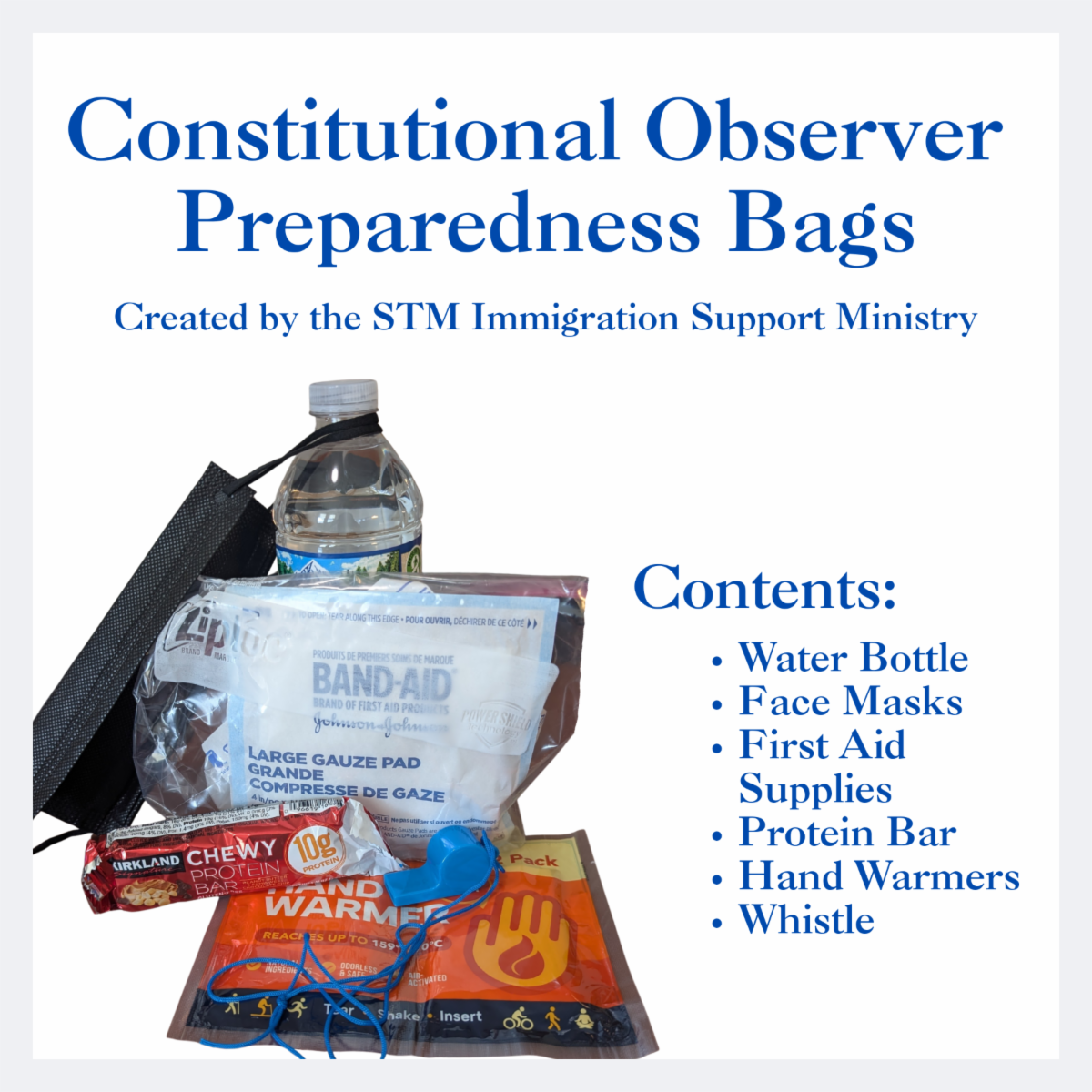 Our STM Immigration Support Ministry has created Constitutional Observer Preparedness Bags for people to grab and utilize when out observing ICE in public. They will be available after the Masses this weekend. Thank you to Jessie Pereira for organizing this!