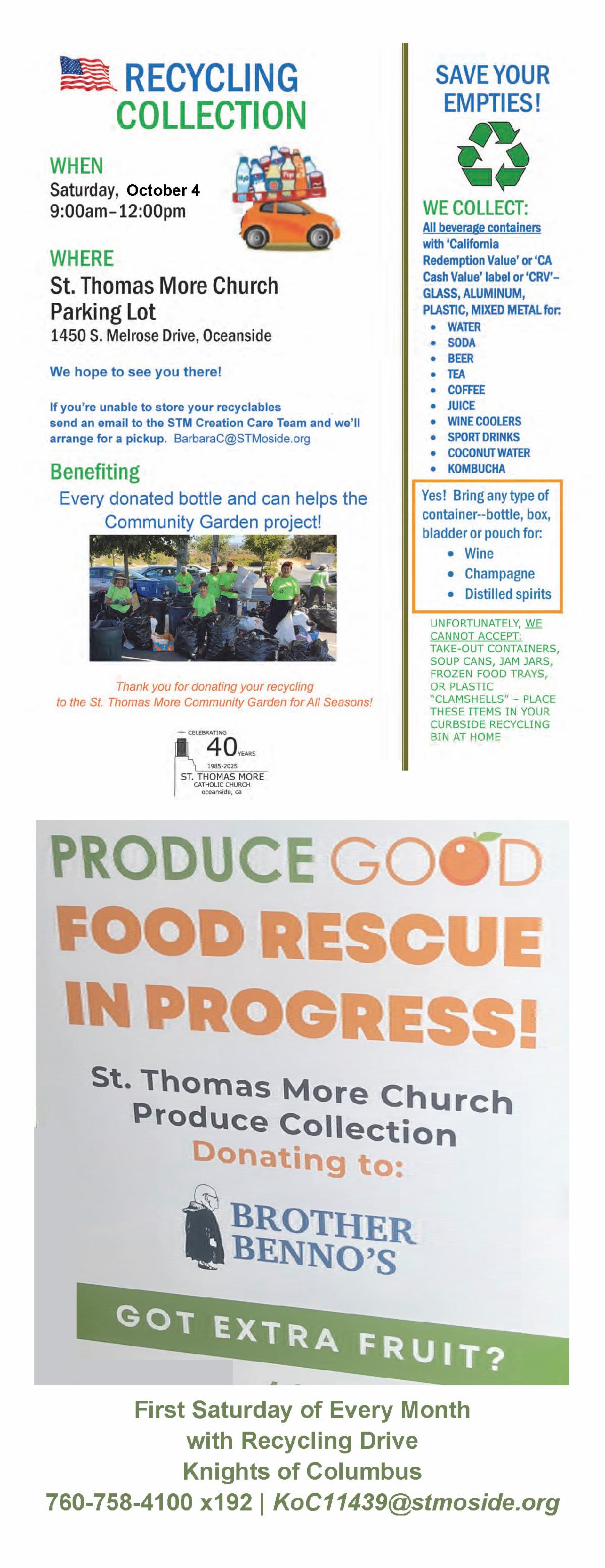 Thank you for supporting our Parish by bringing contributions to Mass, giving online, using text-to-give, or mailing in your contributions to STM at 1450 S. Melrose Dr., Oceanside, CA 92056.