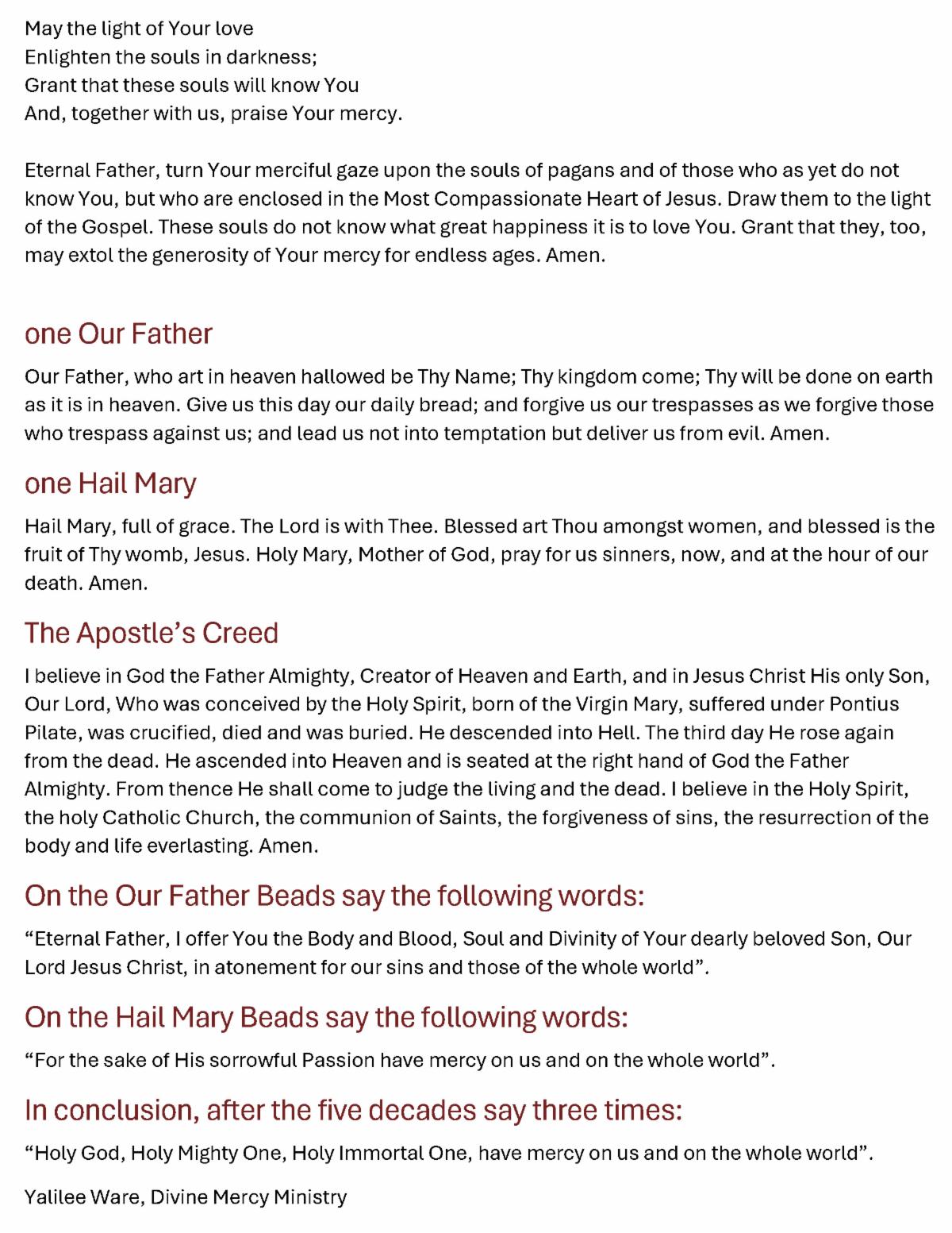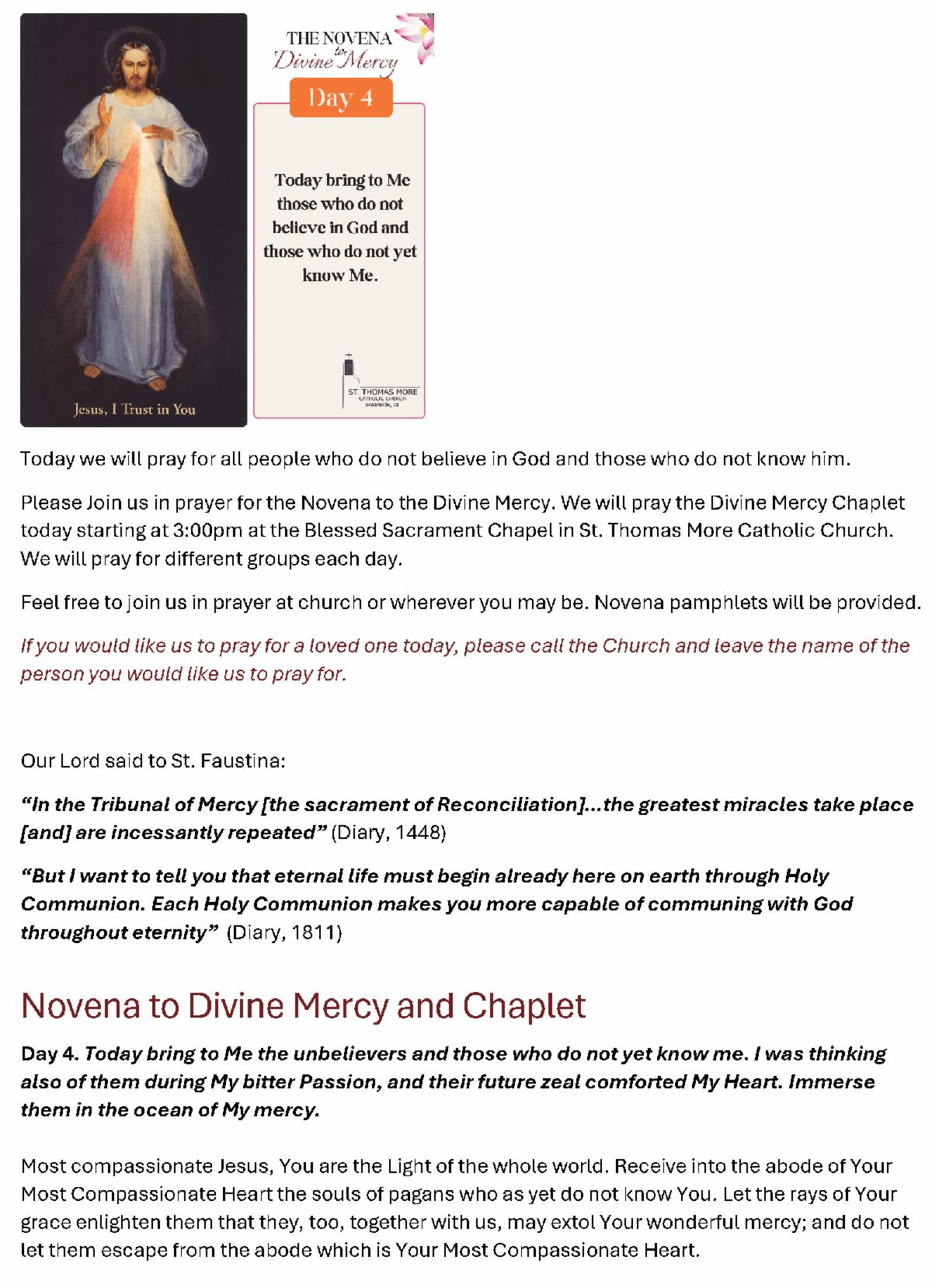 click on this link Prayer Intentions for the Divine Mercy Novena,