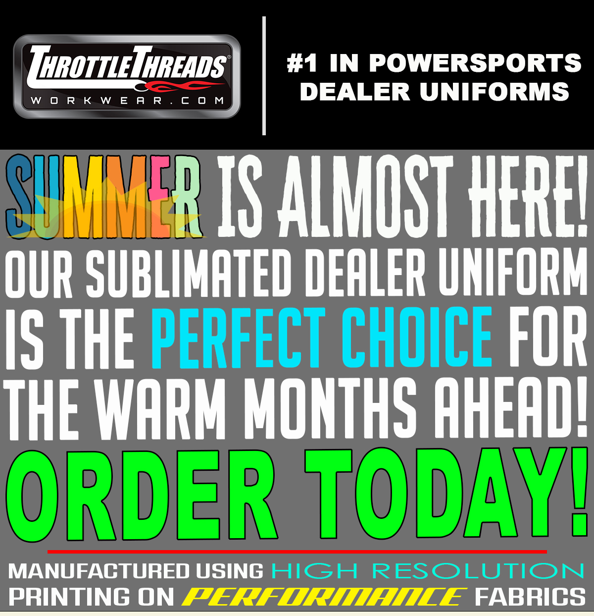 Our Sublimated Dealer Uniform is the PERFECT CHOICE for the Warm Months Ahead!
