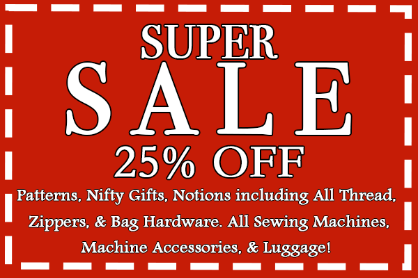 25% OFF PATTERNS, NOTIONS, NIFTY GIFTS, SEWING MACHINES AND SEWING MACHINE ACCESSORIES!