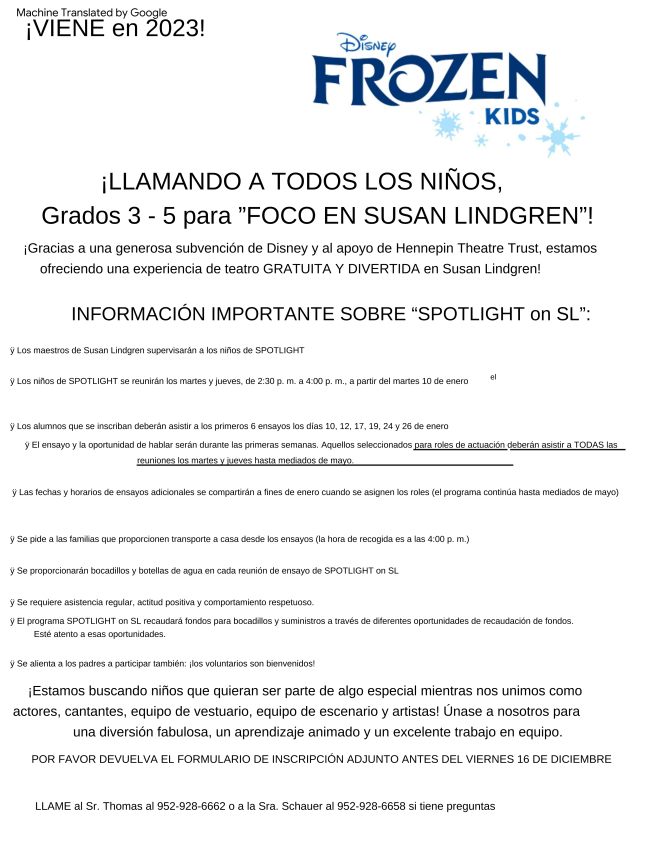 A Festival of Nations flyer was sent home with your student last week. Mark your calendar for Thursday, January 26, 6-8pm at Susan Lindgren Elementary!