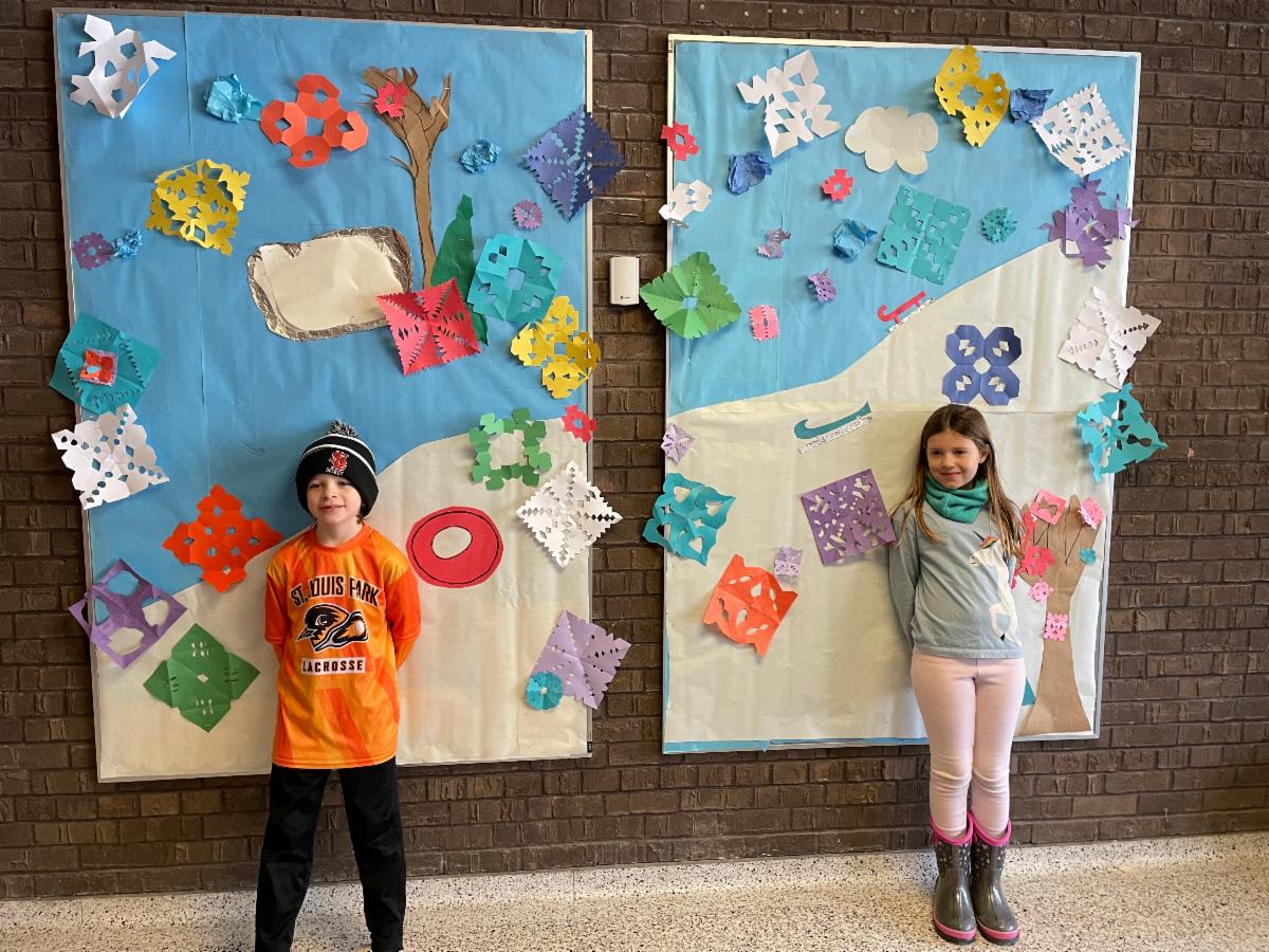 Thank you so much to Henry M. and Lucy W., as well as Ms. Gamble's Second Grade class for making the snowflakes. Henry and Lucy came in on their day off from school to put together this beautiful and welcoming bulletin board in our main foyer. Thank you all!