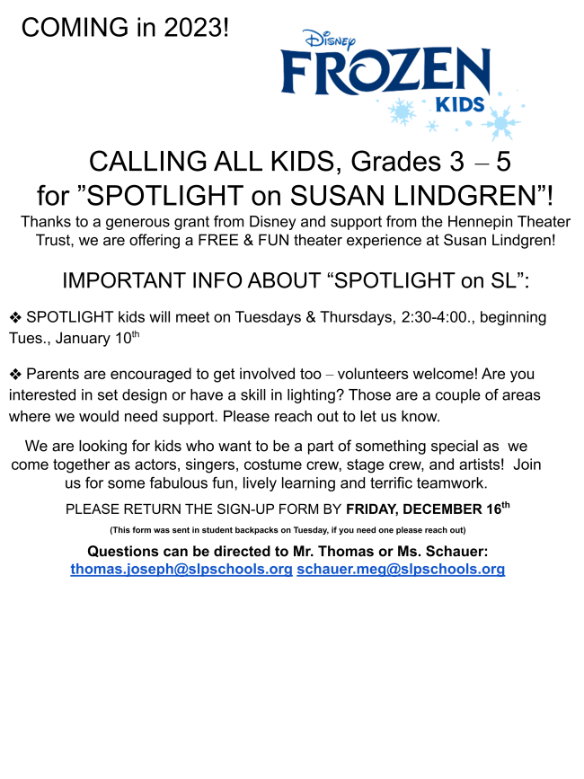 Questions? Contact Kelleen at obrion.kelleen@slpschools.org or 952-928-6399