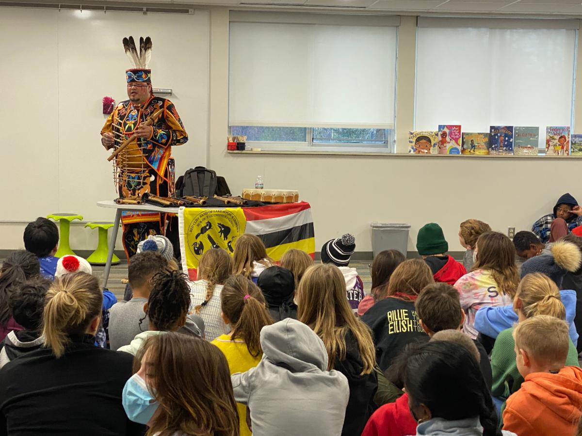 Our Fourth and Fifth Grade students, along with our students that identify as Native American in all grade levels, had the honor and privilege of listening and learning from Laughing Fox Storyteller. He shared with the students his hand made flutes and and beautiful stories of the land. The students were so attentive and respectful to Laughing Fox! Thank you students and Laughing Fox! | |