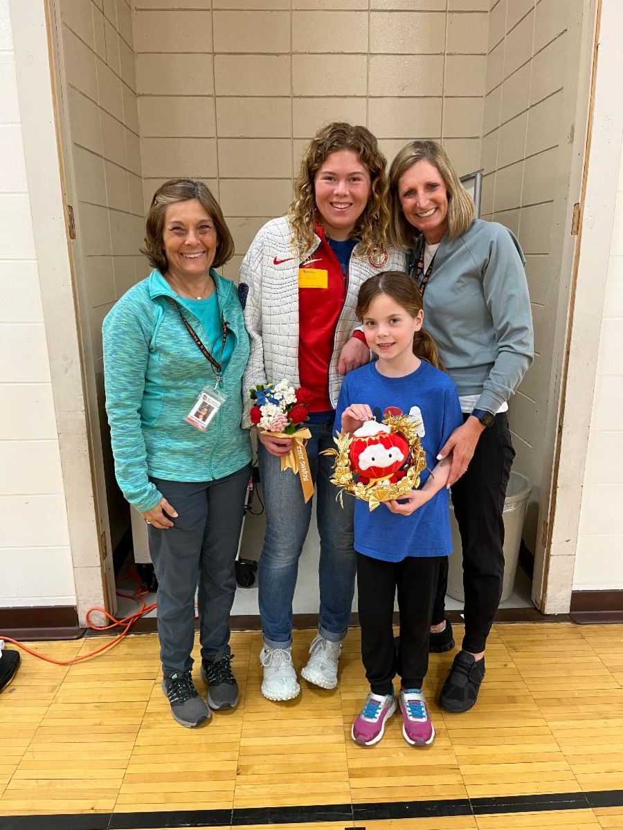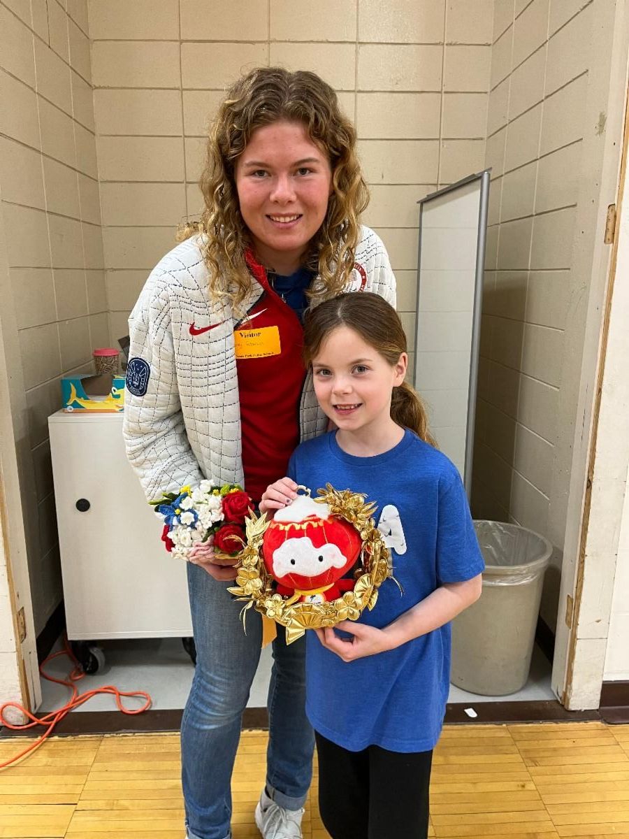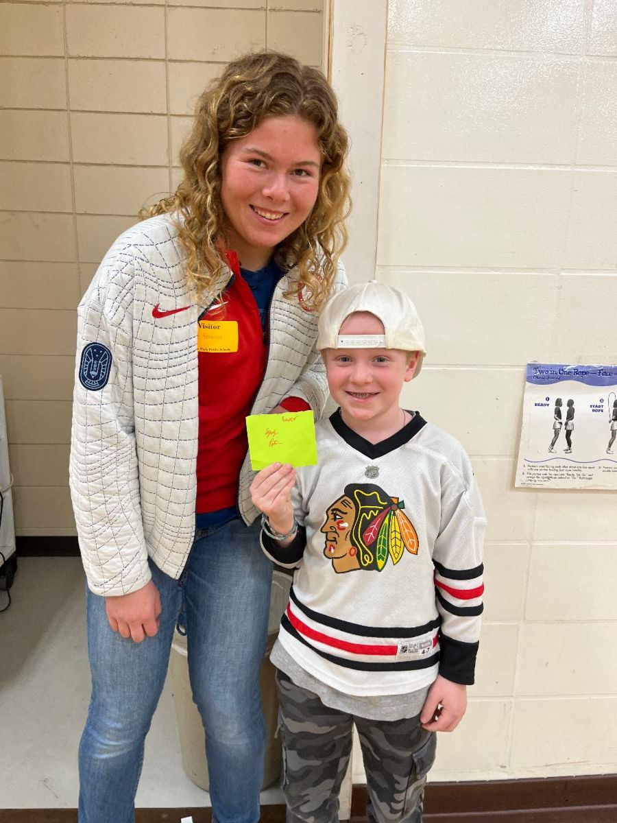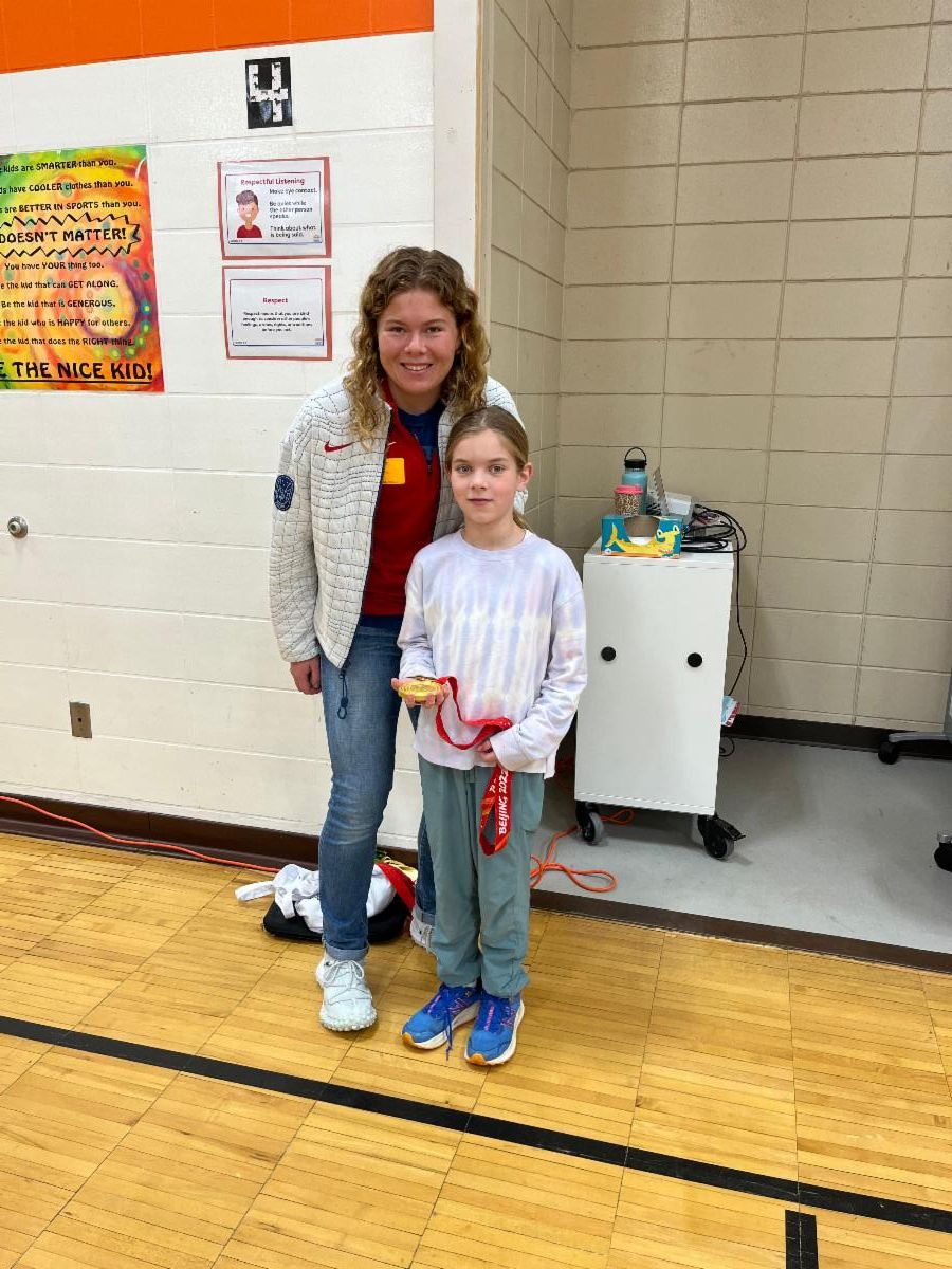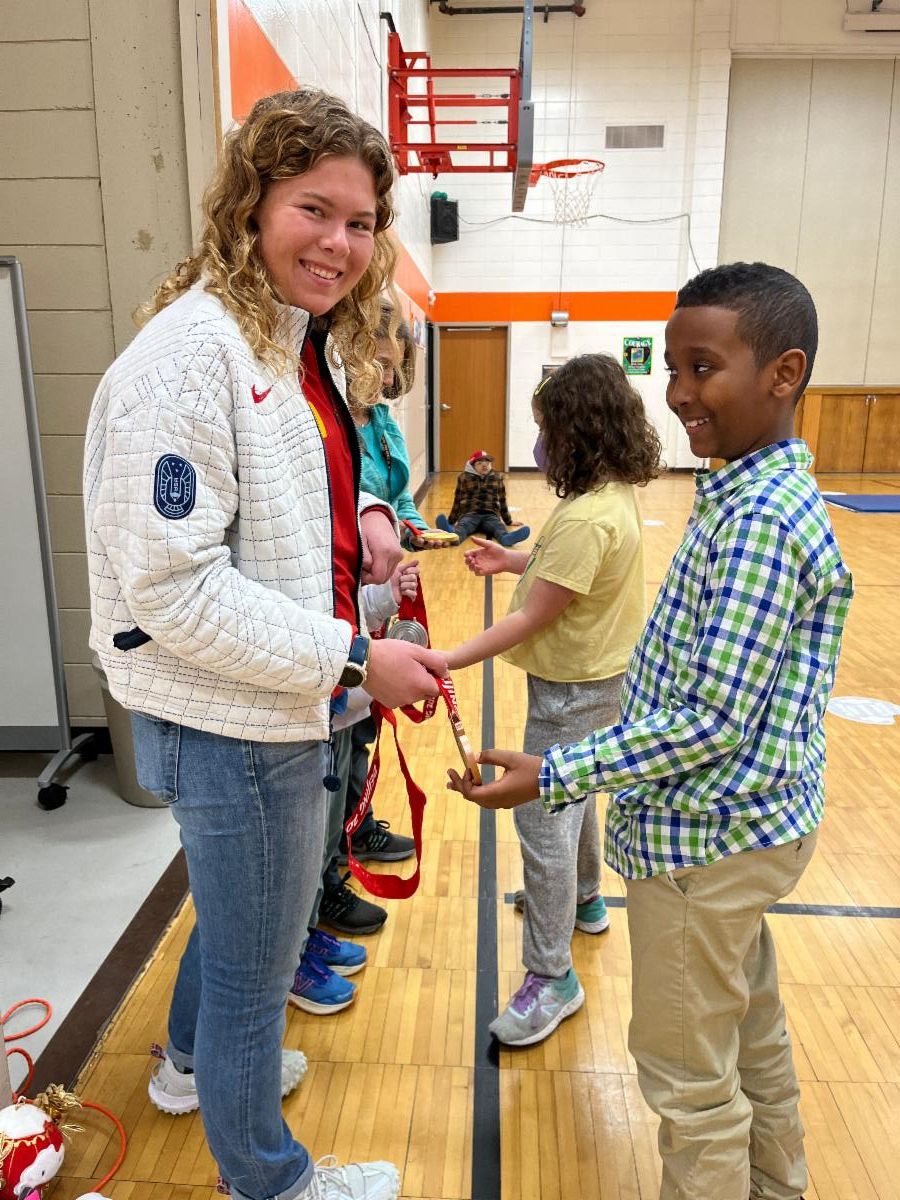 We had a visitor in P.E. class who competed in the Paralympics this year! Her name is Sydney Peterson and she is the cousin to Reese (4th grade) and Brynn (2nd grade) Haggerty. Sydney won Gold, Silver and Bronze medals in different Cross Country Skiing events. She shared her journey with the students through a slide show presentation and the students were able to see her medals and ask questions. It was an exciting day!!!!