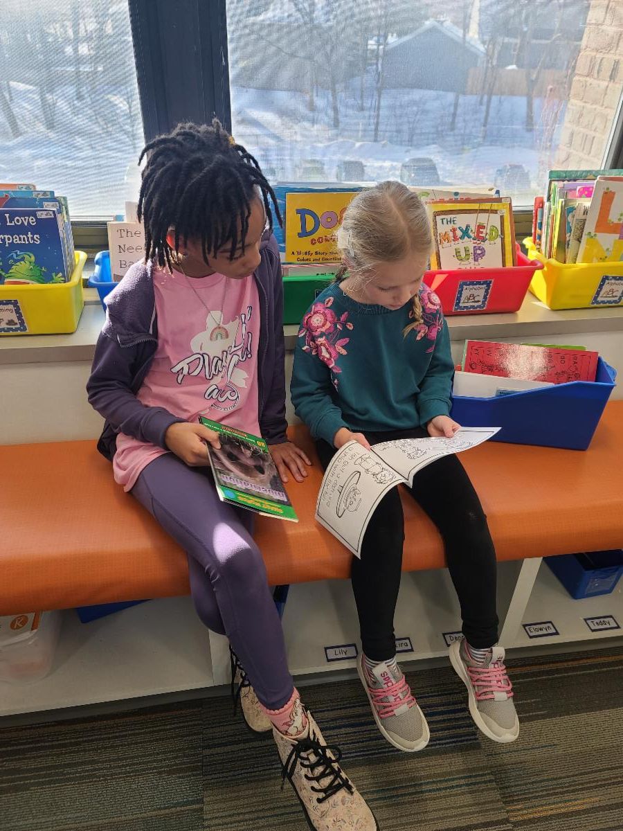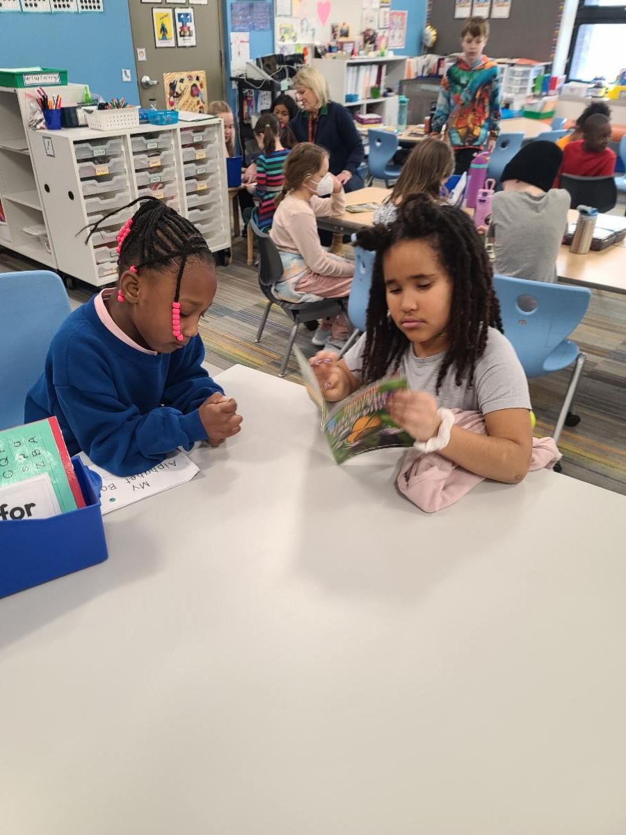 Ms. Dvorak's Kindergarten Class and Mr. deNeui's Third Grade Class Reading Buddies!