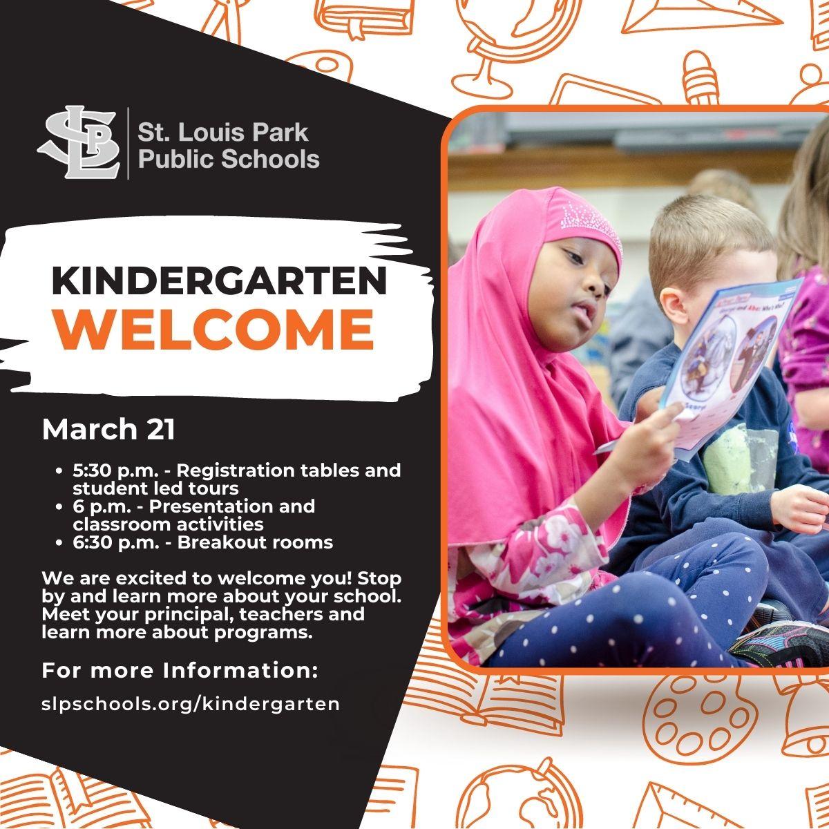 If you or someone you know has an incoming kindergartner, be sure to check out the Kindergarten Welcome on March 21. Doors will open at 5:30 p.m. and the presentation and activities will start at 6 p.m. Kindergarten Welcome is a great opportunity for 2023-24 kindergarten families to meet your school's principal and teachers, explore your school building, enjoy fun activities, learn about before- and after-school programming, and complete your enrollment process.