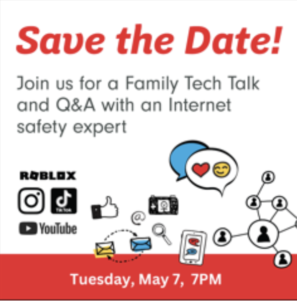 From Roblox to TikTok, technology is changing fast, and many of us are struggling to stay one step ahead of our kids. Please join us on Tuesday, May 7 at 7:00 pm for an expert Zoom presentation and Q&A about how to help your children stay safe online.
