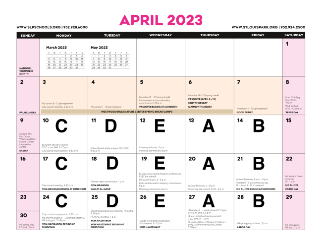 Families and residents can pick up the printed City-District calendar at St. Louis Park City Hall and all St. Louis Park Public Schools schools. In the interest to be fiscally responsible, we'd like to understand if families find value in having the upcoming 2023-2024 calendar printed and available to them.