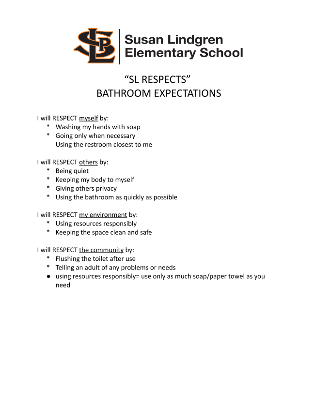 We will begin the year with school wide expectations in the common areas of our hallways and bathrooms.