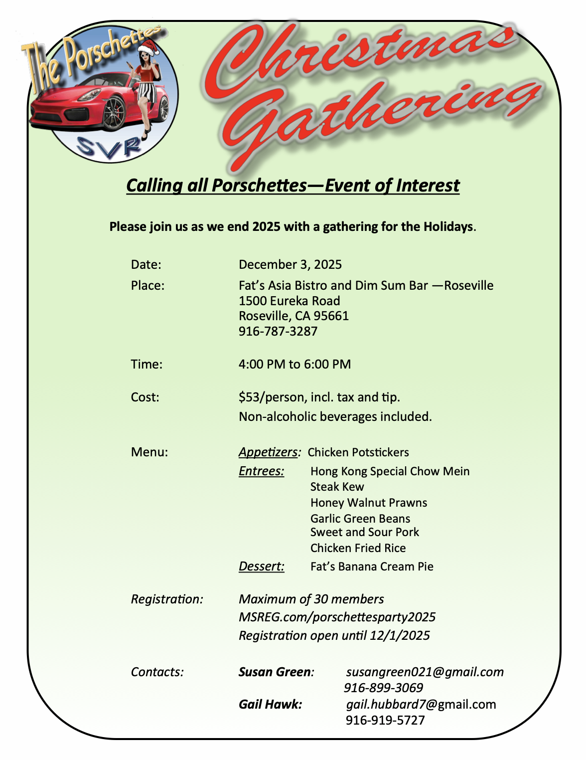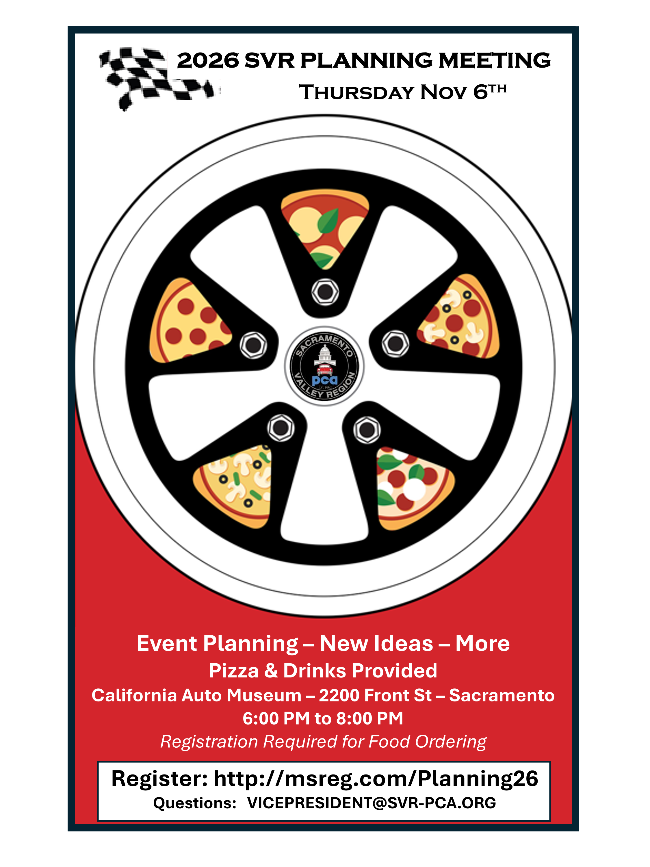Want Club info sent to a second email, work, home, spouse, friend...? It’s as easy as e-mailing your second e-mail address to our SVR Membership Director at membership@svr-pca.org