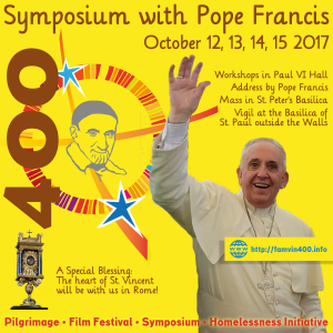 This year we celebrate the 400th anniversary of our Vincentian charism. On this occasion, the Vincentian Family organizes an International Symposium in Rome from October 12 to 15, 2017 where all members of the Vincentian Family are invited. This event is open to all. Please find attached the information provided by the Vincentian Family: Download the invitation