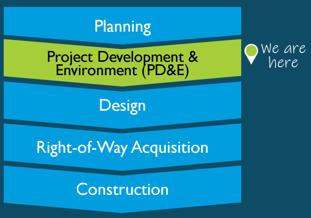 A PD&E Study is a formal process used to develop and evaluate potential alternatives that meet project needs while minimizing impacts on the social, natural, cultural, and