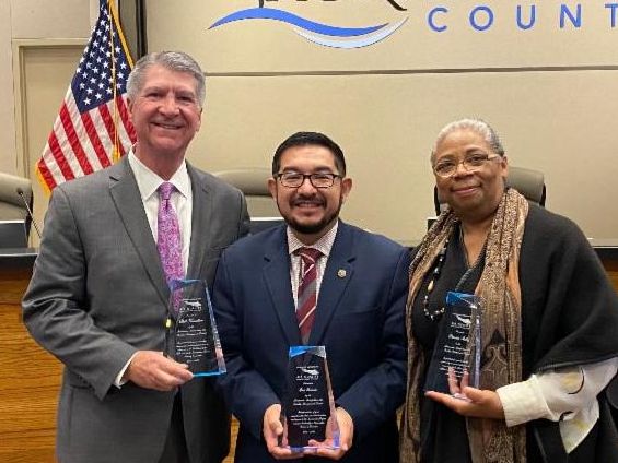 (Left to right) Bill Knowlton, Eric Guerra, and Patricia Shelby receive recognition for their service to the District over the past four years.