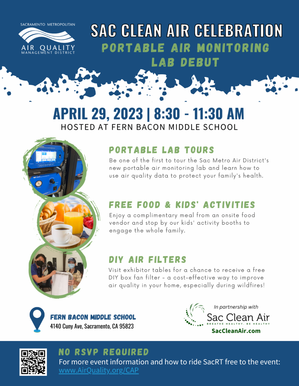 The event will include tours of the portable lab, free breakfast burritos from Super Taco, kids’ activities, and booths providing more information about air quality and topics of interest to the community.
