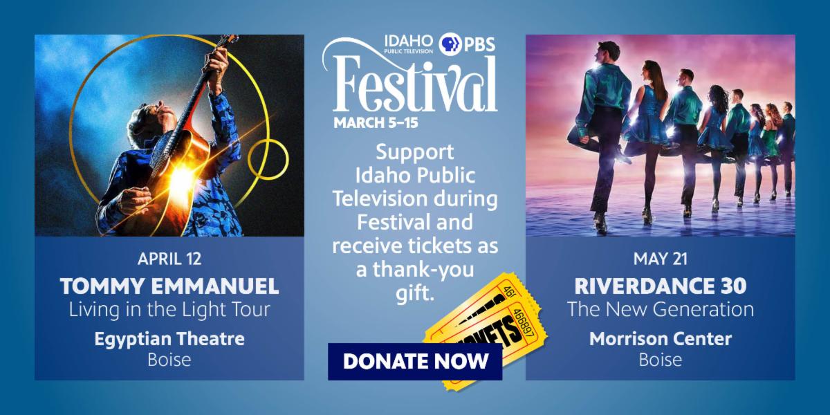 Donate to support IdahoPTV during Festival and receive tickets to these live events as our thank-you gift.