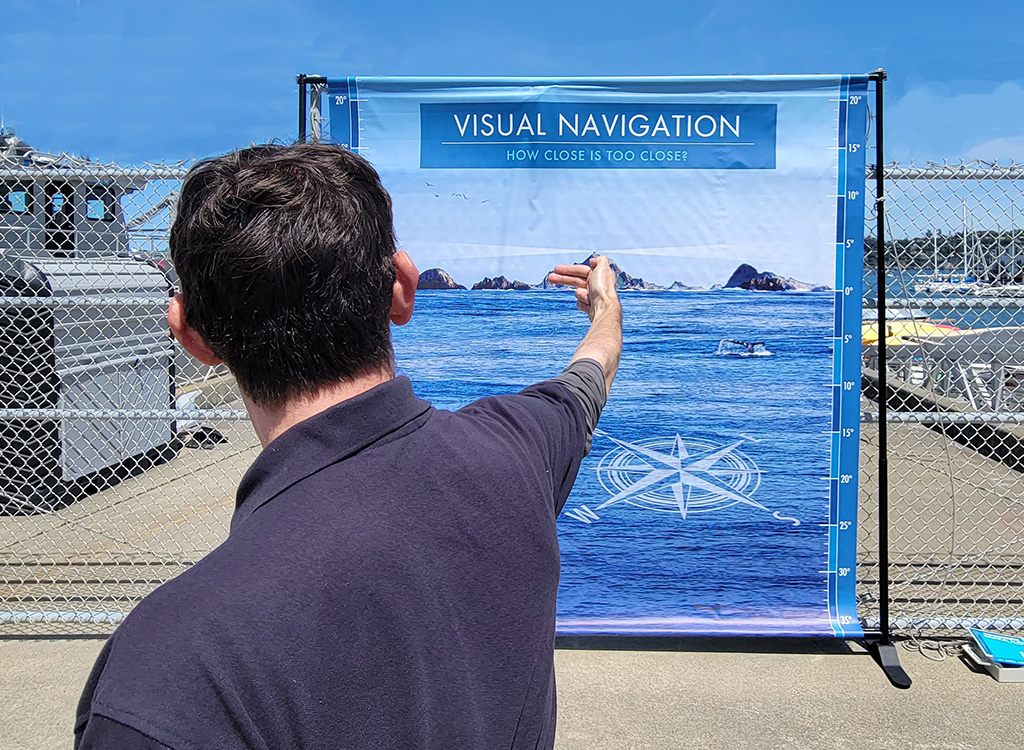 Lars Anderson points to the SSC's new safety cones. The SSC trailer's strategic parking position ensured that everyone saw it when they arrived at the event.