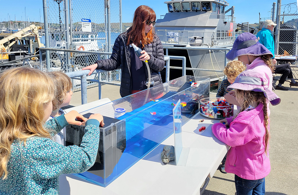 The members of the SSC Exhibits Team are all too modest to take credit for the idea to create a new Lego beach for the Making Waves exhibit. The new beach, 3D-printed by Steve Malton, eliminates issues with rock and grit damaging the tank (a problem with the old beach), while offering a dramatic increase in creative expression and experimentation by those engaged with it. Its simplicity and flexibility have been a huge hit.