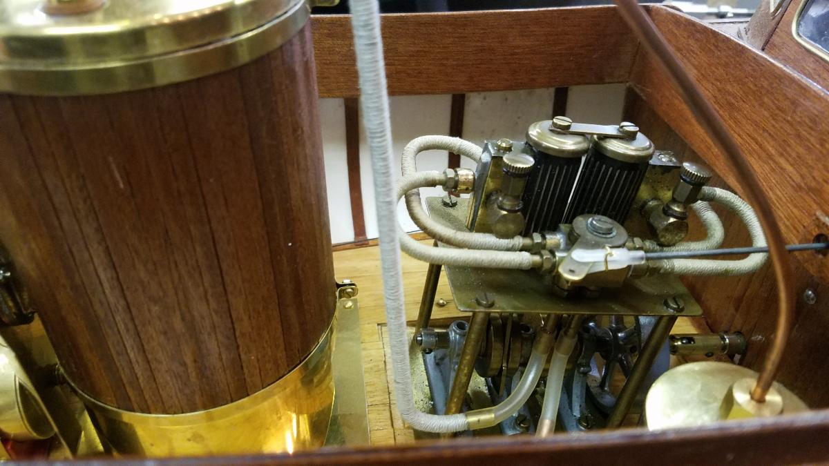 The model they are looking at has a working, miniature steam engine