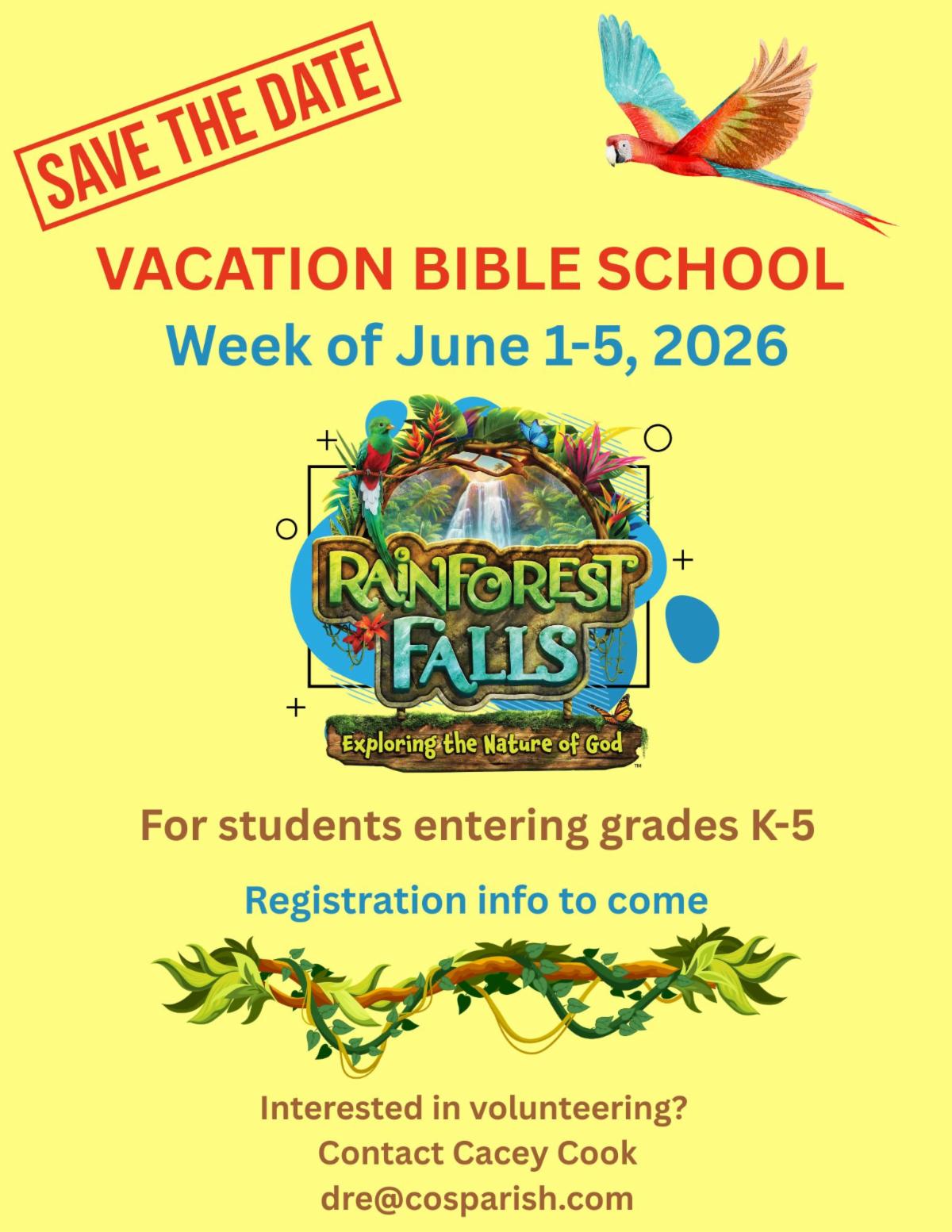 Submit all paperwork by June 15, 2026. Paperwork can be sent to Mrs. Borally electronically or brought to the school office.