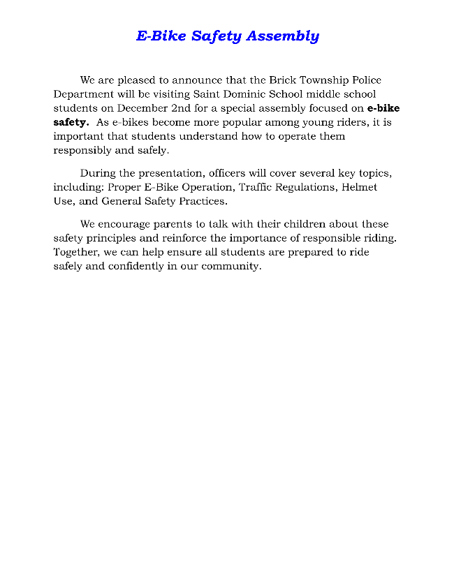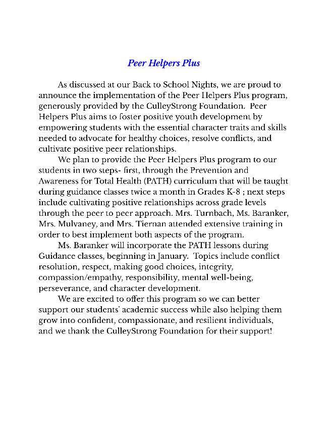 We are aware that this year has continued to present challenges to many of our families and are thankful for all of their continued support to our Parish. If you are behind in your contributions or have any questions regarding tuition, please contact Mrs. Christine Gallahue in the rectory office at 732- 840-1410. Thank you!