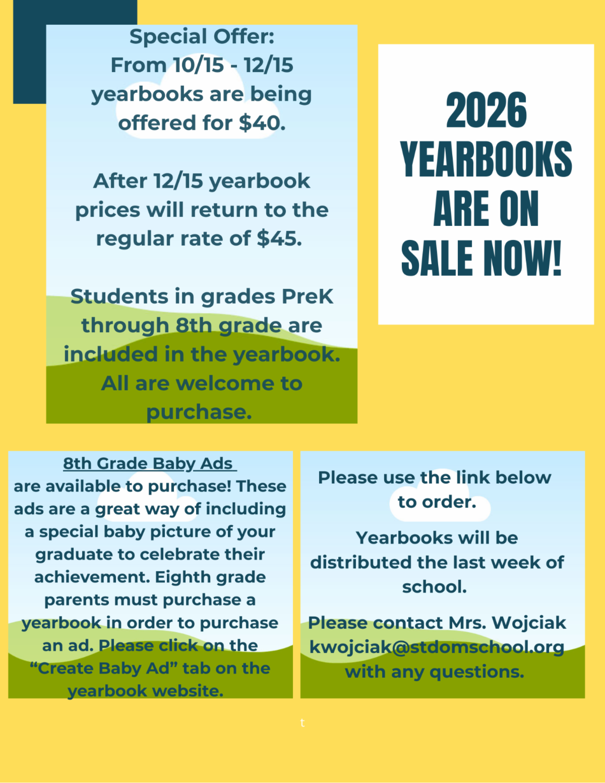 The Parent Volunteer Program is an opportunity to create a partnership between Saint Dominic School and parents by bringing the parents into the school to participate in activities that enhance the social and academic life of the students. We are looking for volunteer assistance on Tuesday-Friday for recess, and Tuesday and Friday for lunch. If you are available, might you consider donating your time and energy to help? Please contact: