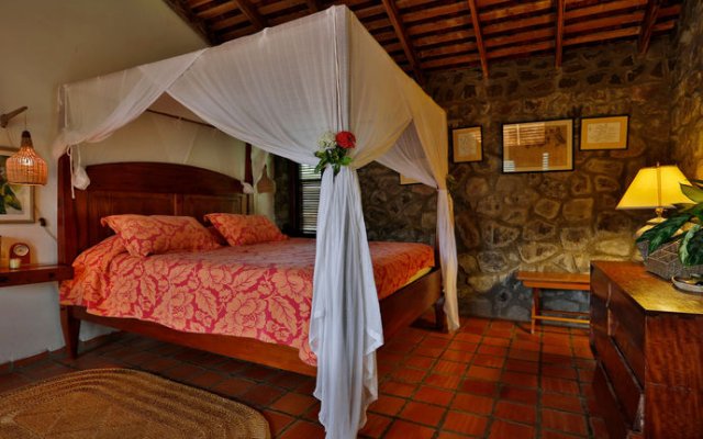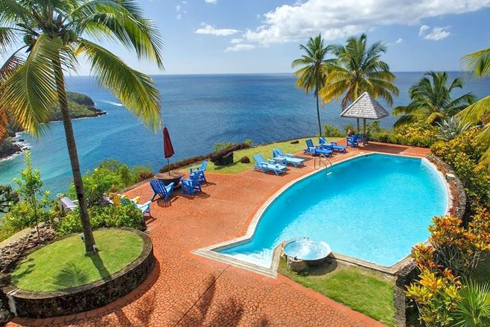 Les Chaudiers is a secluded luxury getaway in Saint Lucia’s west coast village of Anse La Raye, perched on a cliff overlooking the Caribbean Sea. This villa is part of the Collection de Pépites, comprising properties with under 35 rooms. Its name is derived from the multitude of cast iron cauldrons throughout the grounds originally used on the island's sugarcane plantations to boil down sugarcane juice to make molasses and rum. This luxury villa includes three bedrooms, two baths, and one outdoor shower, comfortably accommodating nine guests.