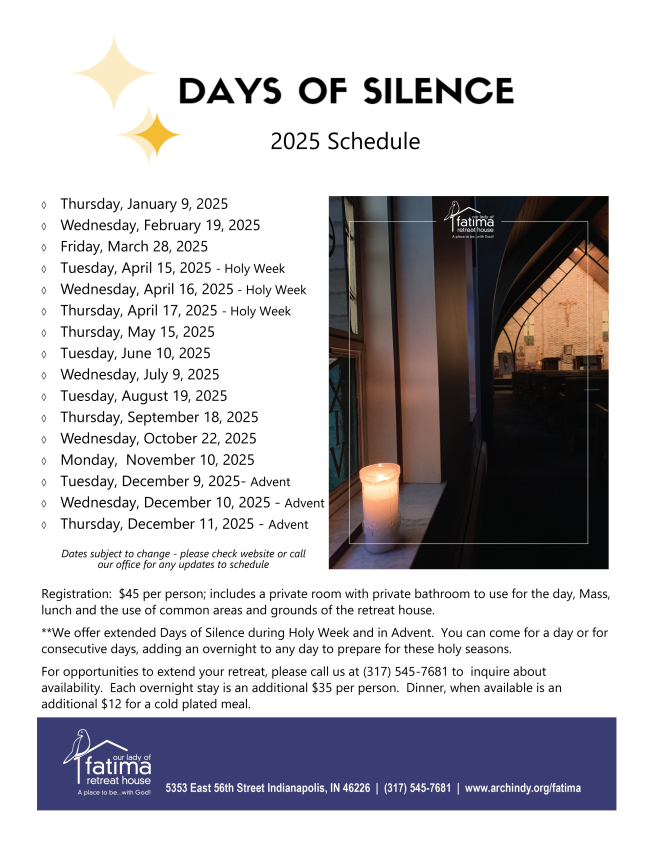Archdiocese of Indianapolis Convocation of Priests. Fr. Bill, along with Archbishop Thompson and other priests of the Archdiocese, will be attending the convocation of priests at Saint Meinrad Archabbey the week of June 23rd. Fr. Bill will celebrate Daily Mass on Monday, June 23rd, but will be away for the remainder of the week. From the 24th-26th, Deacon Mike will lead us in Communion Services at our regular Daily Mass times. Please offer your prayers for Fr. Bill and all who are attending convocation. Thank you.