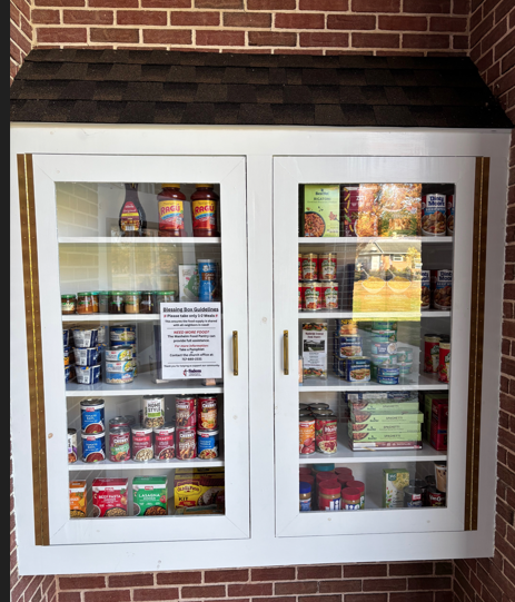 | We have a NEW Blessing Box! The new box will store more items for our community. It is used quite heavily, and we can put more items out each week for those in need of a meal or two. The box sits at the North Entrance behind the sound board (door #5) and the food is available to anyone in need. The popular items listed below can be dropped off at the Welcome Center and will be added to the Blessing Box.