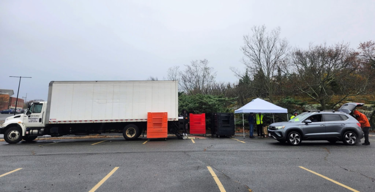 For this collection, enter SHS driveway as usual, then take immediate left toward Horace Mann School, where the recycling truck will be.