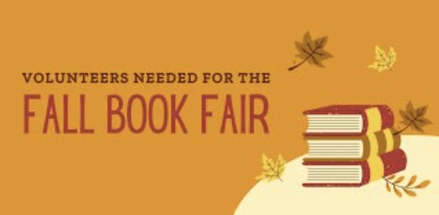 Volunteers Needed for Fall Book Fair (10/7, 10/8, 10/9, 10/10). Sign up here.