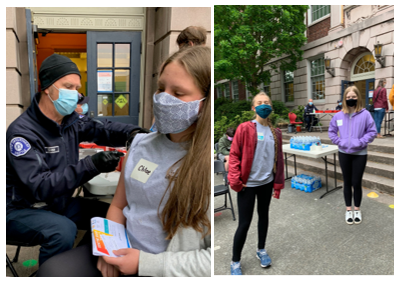 Salmon Bay hosted the Seattle Fire Department this morning at the first of our Covid 19 vaccination clinics. The Seattle Fire Department has partnered with the City of Seattle and Public Health to provide no-cost Pfizer Covid-19 vaccines for community members and students age 12 and over (see below for further details). Thanks to our awesome 8th grade W.E.B. leaders for volunteering to support the clinic this morning.