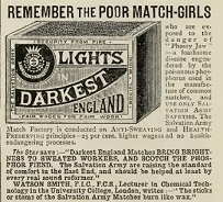 Catherine Booth grew concerned over "sweat labor" shops where women and children worked long hours in very poor conditions, particularly in match making factories where white phosphorous was used.
