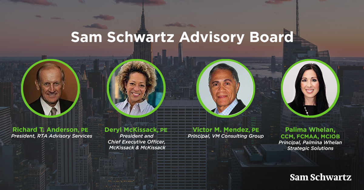 “Sam Schwartz looks across the planning and engineering industries and beyond for cutting-edge ideas and experience,” said Michael A. Shamma, PE, President and CEO of Sam Schwartz. “I am thrilled that this cohort of distinguished leaders have agreed to serve as the first members of our Advisory Board. Their experience will be an enormous asset as we continue to expand the scope and depth of our services and employ the latest innovations across our areas of practice.”