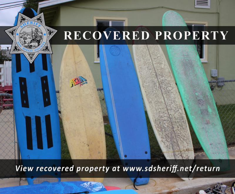 Are you a victim of a theft or burglary? Your stolen property might be waiting for you at the North Coastal Sheriff's Station. Deputies are working to return stolen surf boards, body boards, golf clubs, golf bags and musical instruments stolen across San Diego County.