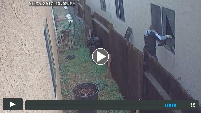 As you can see in the video, the suspect forced his way into the house through a locked, side bedroom window after breaking the glass.