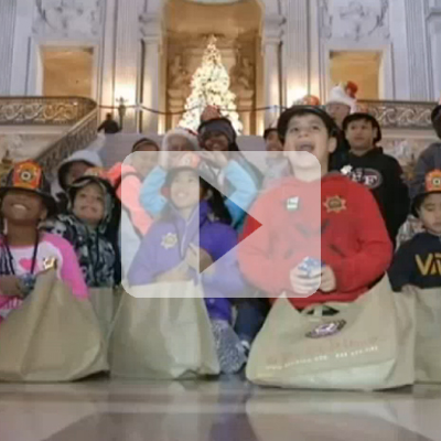 KIDS LINE UP FOR TOYS, SANTA CLAUS IN SAN FRANCISCO