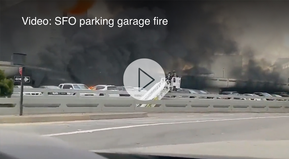 Black smoke was recorded rising out of a parking garage area of San Francisco International Airport on Tuesday morning. The San Francisco Fire Department tells KRON4 that eight cars were involved in the fire in the domestic garage, but it was under control by 7:25 a.m. The call came in at 6:40 a.m. One person was treated for smoke inhalation, the fire department said.