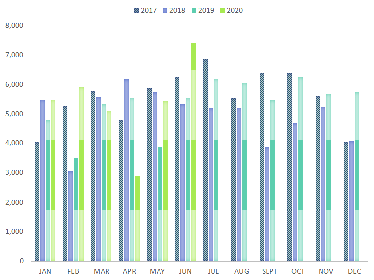 The month of June saw an all-time high of 7,404 operations. Not only have we seen this trend continue in July, but with an average of over 270 daily operations, we're anticipating a count closer to 8,000. We assume this is a combination of our flight schools playing catchup and our users deciding to fly the pattern as an escape from looking at the walls at home. Either way - we like what we're seeing!